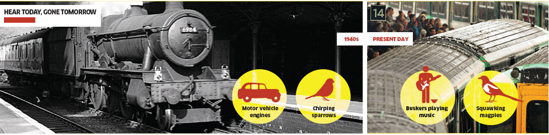 Es muy interesante escuchar cómo ha cambiado el paisaje acústico. Las calles británicas son sorprendentemente silenciosas. Igualmente, hoy en día el lugar de trabajo también es mucho más silencioso. En general, el estruendo de las fábricas de las décadas anteriores ha sido sustituido por voces discretas y el zumbido del aire acondicionado.