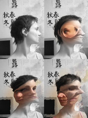 The goal of the Khronos Projector is to go beyond these forms of exclusive temporal control, by giving the user an entirely new dimension to play with: by touching the projection screen, the user is able to send parts of the image forward or backwards in time. By actually touching a deformable projection screen, shaking it or curling it, separate «islands of time» as well as «temporal waves» are created within the visible frame. This is done by interactively reshaping a two-dimensional spatio-temporal surface that «cuts» the spatio-temporal volume of data generated by a movie.