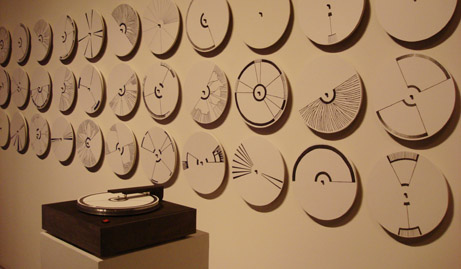 Caleb Coppock (U.S.) Graphite Sequencer, 2007-201, graphite, paper, tone generator, wire, wood, custom housed turntable