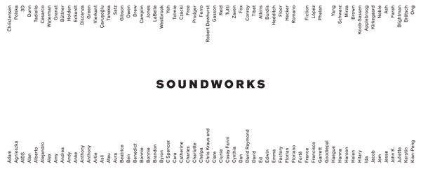 SOUNDWORKS embraces the ephemeral nature of sound, and presents an online platform that doubles as a virtual exhibition space. This site aims to make the works internationally accessible, a place to explore the genre as a medium which is simultaneously inclusive, interactive, and subversive. It includes a wide range of audible approaches by artists who have been working with the medium for many years, as well as artists taking their first venture into the sonic arts.