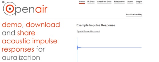 Reverberation is an audible effect that is heard every day as a result of sound interacting with the environment around the listener. It is an effect that is commonly added artificially to electronically recorded and produced music, as well as in other media such as cinema, virtual reality applications and computer games. Auralization is an increasingly popular technique for accurately simulating reverberation and this website supports this practice through an expanding library of downloadable acoustic impulse responses (IRs) from interesting buildings, spaces and other sources. A demonstration audio file prepared using data selected at random from the library can be heard using the player on the right. Click on IR Data or use the map to browse the content, listen to more sounds and download data. You can upload your own sound to hear what it would sound like if it was played in a space of your choice. Please contact us if you have any comments or suggestions.