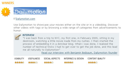 Entrevista a uno de los creadores de Daylimotion: http://web2.0awards.org/web20-interviews/dailymotion.php