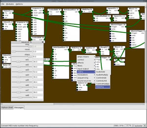 Cabel is a graphical user interface for building Csound instruments by patching modules similar to modular synthesizers. Cabel modules are defined in XML files, so anybody with some Csound knowledge can write his/her own modules and play with them.