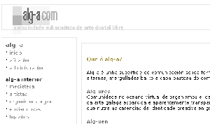 Comunidade no oceano virtual de organismos e ideas na diáspora. Alg-a quere activar o potencial da arte galega esparcida e aparentemente transparente, aglutinandoa nun placton multimediatico que nutra as carencias da identidade creativa en galicia.