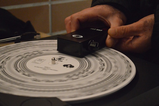 The «eye» hardware’s designer, Tim Knapen, says he opted not to use a smartphone camera as the sensor, because it would have unnecessarily complicated the process. «We use a simple light-to-voltage converter that doesn’t do any processing. An iPhone app would require some visual processing but more importantly also some kind of synthesizer. In the setup we used, all the sound is encoded in the disks and there is no need for anything digital.»