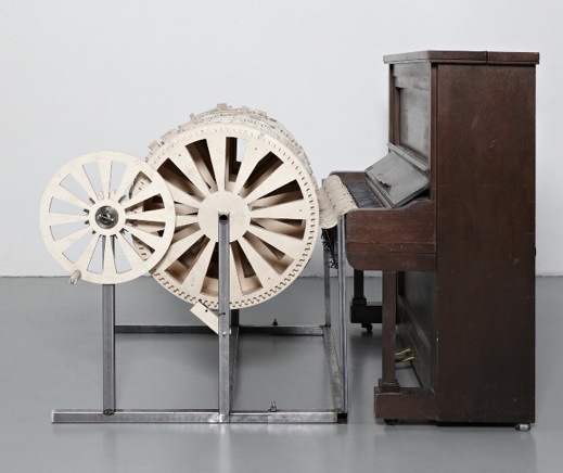 The tall buildings in the city centre have a heavy touch; the low-rise villas to the South create considerably gentler sounds. Akko Goldenbeld has a very personal way of looking at, or rather listening to, the city. He has created a scale model of Eindhoven and assigned it the role of sound recorder; the buildings create the score. Placed on a revolving wooden cylinder the buildings set little hammers in motion that play the keys of a piano. And turning and turning, the city makes its voice heard: from loud to soft, long to short, high-pitched to low, translating the urban developers’ three-dimensional reality into an aural experience.