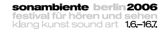«Sonambiente berlin 2006 is summer in berlin set to music for the eyes and ears. Installations, objects, performances, happenings – visual art, sound art, video, new media, radio art, film: from June 1st to July 16th, for the second time since 1996, over 40 internationally known artists and some 20 up-and-coming art school talents make the metropolis reverberate with sound […]»
