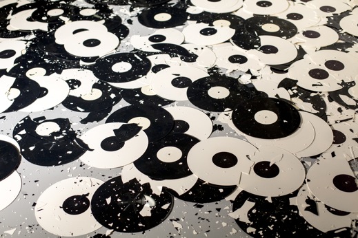 Zeitgeist Gallery presented HARMONY OF THE SPHERES, a multidisciplinary project by Kevin Cooley and Phillip Andrew Lewis which uses the process of creating and subsequently destroying vinyl records as metaphor for the creation and destruction of the cosmos. The title of the exhibition refers to an ancient Greek belief in a connection between the movements of celestial bodies, namely the sun, moon, and planets which creates a form of music, manifesting in numbers, visual angles, shapes and sounds. Vinyl was chosen by the artists as an ideal material to work with for it’s physical characteristics and conceptual significance. Vinyl is essentially a form of compressed carbon – the building block of the universe itself.