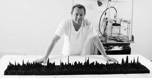 Gilles AZZARO is a French digital artist born in 1966 in Casablanca.To better define his work, he created the profession of «Sculpteur de Voix» (voice sculptor).His works principally involve the three-dimensional materialization of voices and their audio reproduction.Using cutting edge technologies he reveals the forms of the invisible, transforming and magnifying them into truly amazing lunar-like landscapes.