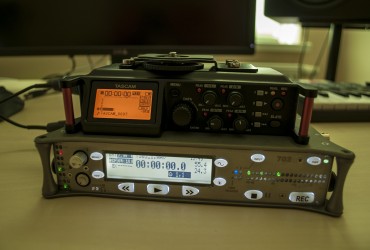 The Magnetophone, by Slovenian artist Hrvoje Hiršl, consists of a rectangular metal frame housing 12 magnetic play/record heads and a system of wheels which drives a magnetic tape around a closed circuit. The tape heads randomly play or record onto the tape at different points along its length, so that previous recordings are played or erased by new (re)recordings. This results in a fragmented multi-layered portrait of a dynamic acoustic space and of a sonically “self-aware” machine. Since the recording can begin at any point on the tape spatio-temporally, a multi-entry point feedback loop creates and records the machine-monologue. Assuming the starting point is a blank tape, the recordings increase in complexity and gradually degrade the acoustic memory of the process. The Magnetophone, as it recombines and re-amplifies its own sonic resonances within space, is in many ways similar to Alvin Lucier’s well-known work “I am Sitting in a Room”. Lucier’s work, by re-recording a passage of text, documents the gradual disintegration of spoken word into pure tone. As with Lucier’s work, The Magnetophone records both the sound of its own ‘voice’ and the resonance or formant frequencies of the room in which it is placed. Over time the characteristic sounds are recombined and re-recorded so that they become ever more distanced from the original through the interaction of spatial resonant harmonies. The multiple recording and playback creates a hyper-spatial feedback recording process so that after many play/record iterations only a sonic abstraction of deep, distorted, saturated echoes remain as a sonic signature of the space itself. Paul Prudence
