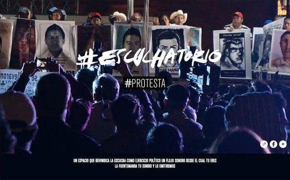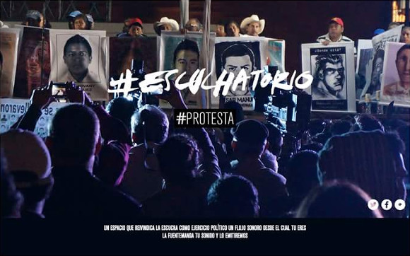 #Escuchatorio es, en sus propias palabras, «un espacio que reivindica la escucha como ejercicio político; un lugar de escuchar o desde donde esto se vuelve posible; un flujo sonoro desde el cual tú eres la fuente». La iniciativa consiste en una emisora online y una convocatoria pública que recopilará grabaciones de campo y sonidos de protestas de todo el planeta, y que realizará una emisión de 43 horas los próximos días 26 y 27 de septiembre.