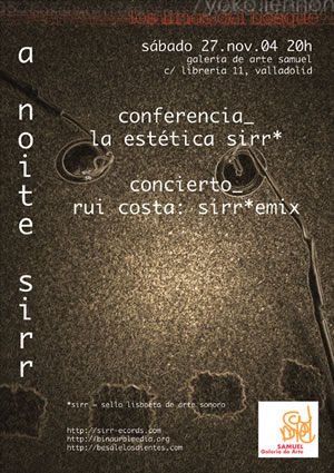 El día 27 de noviembre tendremos el honor de contar con Rui y Luís Costa, dos de los responsables del sello, que nos hablarán de la estética sirr. Rui Costa también presentará una reconstrucción en directo del catálogo sirr.
