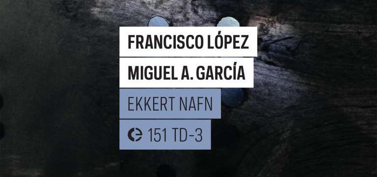 The collaborative album Ekkert Nafn was composed from sound materials collected by Francisco López and Miguel A. García. Some of these materials were derived from field recordings, others from electrical and mechanical devices, all were manipulated with digital tools to varying degrees. After compiling the collection of sounds, both artists proceeded to compose independently, arriving to pieces that inevitably intersected each other’s aesthetics. In the two chimeric works presented in this album, we may recognise each artist’s authorial identity intertwined with the other’s in multiple and surprising ways. The title of the release is actually yet another manifestation of this superposition: García often uses invented words to title his pieces, looking for sounds and forms that somehow connect with the music. Sometimes, within these invented words, he discovers words from languages he does not understand. Ekkert Nafn happens to not be made up of invented words — although it could have been — but is composed by two Icelandic words that translate to the quintessential López title, No Name.