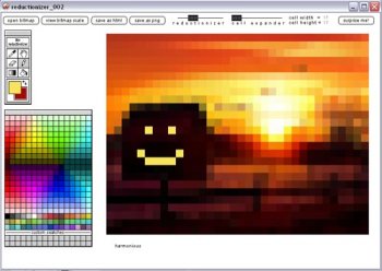 It converts bitmap images to html table layouts and provides for easy scaling of cells using sliders and text entry fields. It has a very reductionist lean to it, in that it is easy to reduce a photograph down to a more abstract lower resolution image. It exports to both graphic and html formats. It will have editing functions like a pencil, eraser, paint bucket, hand and gradient tools to allow for more creative freedom. It will have z sort able layers, palettes and an eyedropper.