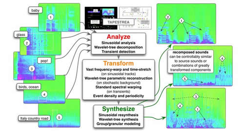 what is it? : TAPESTREA (or taps) is a unified framework for interactively analyzing, transforming and synthesizing complex sounds. Given one or more recordings, it provides well-defined means to: