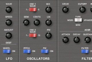 ASynth is a six voice virtual analog synthesizer featuring two oscillators and three circuit modelled filters.