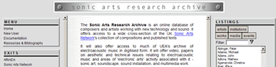 «The Sonic Arts Research Archive is an online database of composers and artists working with new technology and sound. It offers access to a wide cross-section of the UK Sonic Arts Network’s collection of compositions and published texts.