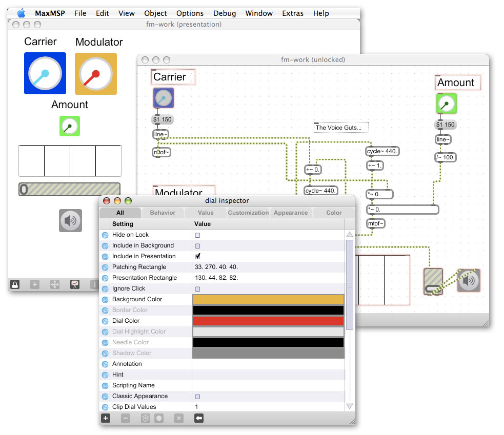In addition to a modern infrastructure designed to support today’s multi-core processors and tomorrow’s operating systems, Max 5 features a stylish new UI intended to aid in the expression of complex ideas in a fluid manner. As a result, Max’s pioneering concept of interactive graphical programming has been pushed forward in numerous ways large and small. A prime example is presentation mode, which de-couples programming logic from user interface construction, allowing clearer patches as well as richer user interfaces.