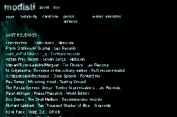 MODISTI.COM is a spanish free of charge experimental music discographic information service. Our task consists in offering information about the latest releases