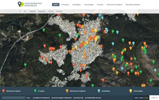 Cartografías Sensibles es un proyecto que apuesta por la defensa y la puesta en valor del patrimonio de la parroquia de Vincios y de la Serra do Galiñeiro. Se trata de un acercamiento virtual a una realidad territorial rica y compleja a través de mapas nos hacen descubrir historias, topónimos, molinos, cuevas, yacimientos arqueológicos, leyendas, músicas y tantos otros elementos que configuran la identidad de este lugar. La Comunidad de Montes de Vincios lleva años promoviendo la multifuncionalidad de un espacio vivo, con infinidad de posibilidades tanto productivas como ambientales o de ocio. Un lugar especial en el que conviven la obtención de recursos naturales con la pasión por la naturaleza en todas sus formas y actividades, así como la conservación de las tradiciones, los valores naturales y del patrimonio cultural.