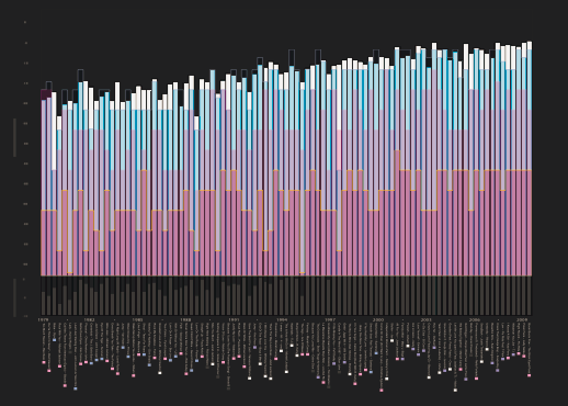 A Visual History of Loudness: Christopher Clark graphed the peak levels and RMS level of three hit songs from every year since 1979 to illustrate the rising use of compression in music production.