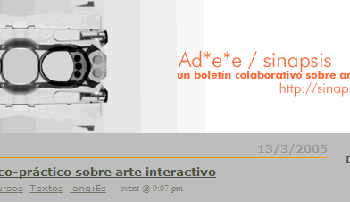 acciones acústica arte arte sonoro artilugios artistas audiovisual charlas cine comunidades convocatorias copyleft cultura libre directos educación entrevistas eventos exposiciones festivales fonografía grabaciones de campo hacktivismo historia ideologías instalaciones instrumentos inteligencia colectiva internet libros música netaudio novedades nuevos medios paisaje sonoro podcasts radio recursos ruido software software libre sonido talleres textos videoarte vídeo