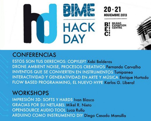 Nos llega la información sobre BIME Hack Day que se celebrará los días 20 y 21 de noviembre en el BEC(Bilbao Exhibition Centre). Además de los conciertos, se desarrolla un encuentro en dos bloques. Por una parte HACKATHON HACKX24 dedicado a la producción de aplicaciones en un espacio conjunto. Por otra un programa de conferencias que tiene entre sus ponentes a parte del equipo de Audiolab.
