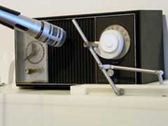 Commitment Radio rethinks the idea of preset stations. Moving a metal marker along the tuning strip allows you to scan for stations.