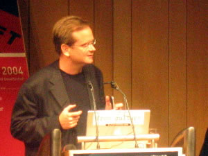 Excelente resumen el publicado por Elastico.net. La cultura libre y su imparable expansión sirvieron de «eje discursivo» de la edición de este año. La potencialidad, y ya realidad, del trabajo conjunto de las comunidades digitales desestabiliza todo un engranaje que parecía, cuando menos, inamovible. Ahora solo nos queda dar ese paso simbólico de destronar a Bush para abrir las puertas de una cambio esperanzador en la sociedad internacional, aunque no debemos olvidar que el proyecto «petroleo» de la Eurasia es un objetivo nacional que apenas variará con la posible entrada de Kerry. Pasito a pasito…