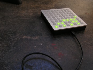 buttons can be configured as toggles, radio groupings, sliders, or organized into more sophisticated systems to monitor and trigger sample playback positions, stream 1-bit video, interact with dynamic physical models, and play games. button press and visual indication are decoupled by design: the correlation is established by each application.