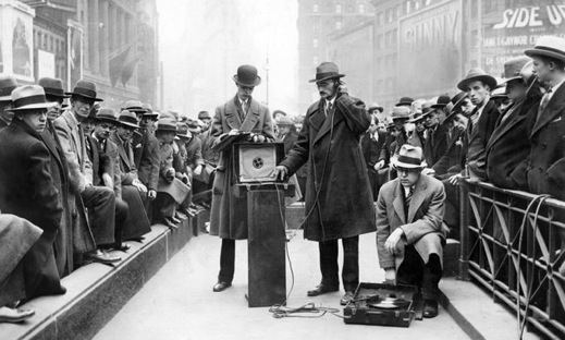 «Trolley cars, boiler making, elevated roads, Subway trains, harbor sirens, and various steam whistles, riveting machines, trucks laden with slabs of iron and rails of steel, milk wagons banging over the pavements in the small morning hours, hand organs, phonographs with megaphone attachment, fish horns, knife-grinding serenades, yelling junkmen, hucksters and peddlers with cowbell distractions, cracked bells ringing day and night in churches and chapels.»