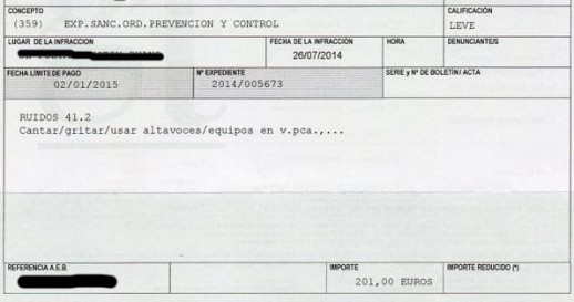 Esta mañana Chinowski Garachana nos enseñaba esta multa impuesta por el Ayuntamiento de Málaga: 201 euros por cantar y gritar en la vía pública.