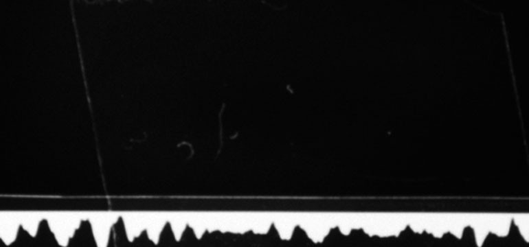 El sonido aflora y se reintegra, las voces masculinas «autorizan» y las femeninas «caracterizan», como un campo de luz y oscuridad increíblemente extraño que se despliega sobre la pantalla. Los parpadeos generados por la textura del papel celo usado para sujetar la composición durante la impresión empujan al espectador a alucinar un subtexto visual inexistente que se complementa con la in/audivilidad intermitente. El sonido y la luz se entrelazan en una cacofonía desorientadora, intensificada y puntualizada por un estrobo antiguo de un laboratorio y un obturador giratorio antisincopado colocado delante del haz de luz del proyector.