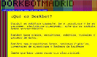 Dorkbot es un encuentro mensual de artistas, ingenieros y ciudadanos en general interesados en eso que llaman «arte electrónico» en el sentido más amplio del término.