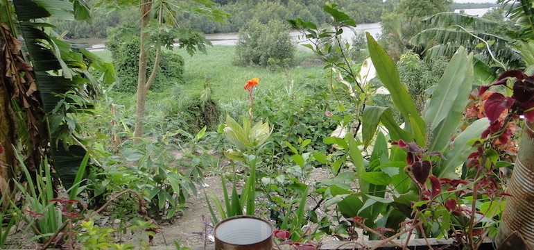 Un jardin biologique et sonore qui à travers son regard, son espace et ses propositions relationnelles, soulignera les interactions et l’identité d’un quartier, et d’une cité d’eau : Douala.