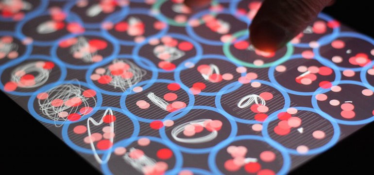 Borderlands is a new musical instrument for the iPad. Explore, touch, and transform sound with this new interface for granular synthesis, a technique that involves the superposition of small fragments of sound, or grains, to create complex, evolving timbres and textures. Borderlands emphasizes gestural interaction over knobs and sliders. Create, drag, and throw pulsing collections of grains over a landscape of audio files, or use the built-in accelerometer to sculpt sound with gravity. Borderlands comes ready to play with default sample content included, but you can load your own sounds too. Watch the original teaser trailer here. Click here to download the default sounds for free.