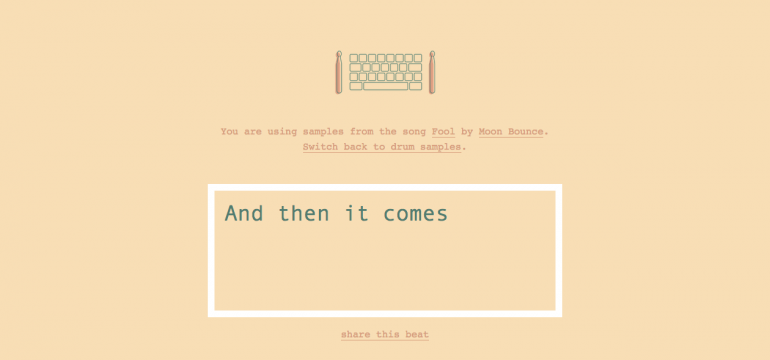 Es bastante simple, permite cambiar las muestras (aunque solo hay dos opciones) y generar un enlace para compartir el ritmo, poco más. Eso sí, da para jugar un rato.