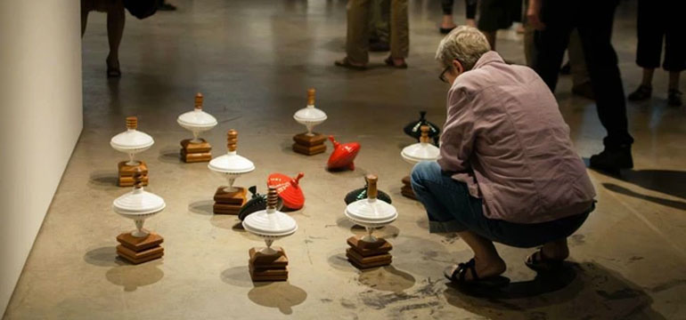 In the video above, you see a test run displaying how this art installation works. In its finality, Scaled Discords will have 20+ sculptural, sonic tops that audiences will be asked to manipulate physically. Through performances, arrangements and sound, these experience will allow audiences to explore symbolic power relations between the white, black and red tops.