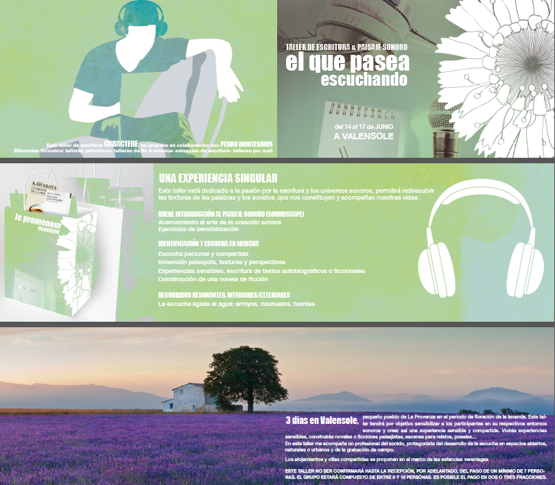 El taller es una colaboración entre el taller de escritura Caractere y el fonografista y artista sonoro Pedro Montesinos (a quien nuestros lectores probablemente conozcan de su trabajo con el Grupo de Exploraciones del Entorno Sonoro en Barcelona).