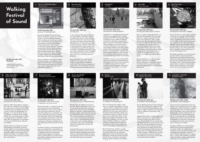 Walking Festival of Sound se inaugura hoy, miércoles 4 de septiembre en Estocolmo, y seguirá hasta el domingo 8. Toda la programación del festival es de acceso gratuito, pero sí se pide inscripción previa.
