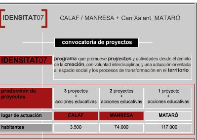 Información más detallada sobre la convocatoria Idensitat 07, con los formatos de presentación de las propuestas e informaciones sobre los contextos locales específicos, en wwww.idensitat.org.