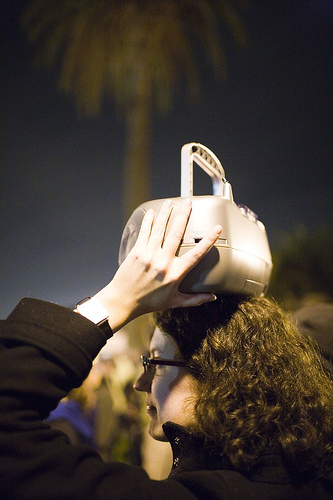 Every year since 1992 I’ve presented Unsilent Night, an outdoor ambient music piece for an INFINITE number of boombox tape players. It’s like a Christmas caroling party except that we don’t sing, but rather carry boomboxes, each playing a separate tape which is a «voice» in the piece. In effect, we become a city block long stereo system!