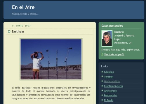 Alejandro Aguerre de Montevideo escribe en este fantástico blog sobre cultura acústica. Funciona desde septiembre de 2005.