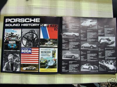 Diese Langspielplatte mit dem Titel Porsche Sound History stellt akustisch die Autogeschichte des Hauses Porsche vor. Vom ersten Typ bis zur letzten Entwicklung, vom Straßensportwagen bis zum Vollblutrennwagen sind alle bedeutenden Typen hier vertreten. Dazu die technischen Angaben in Wort und Bild sowie Aussagen vom Gründer Professor Ferdinand Porsche und dem damaligen Chef des Hauses, Dr. Ferry Porsche. Herausgeber dieses Zeitdokuments ist der bekannte Rennfahrer Jürgen Barth.