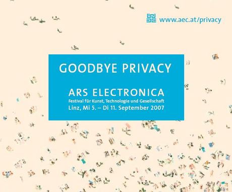 “Goodbye Privacy” is the theme of this year’s Ars Electronica, the festival extraordinaire of art, technology and society in Linz, Austria. September 5–11, 2007, the focus will be on these late-breaking phenomena of a new culture of everyday life being played out between angst-inducing scenarios of seamless surveillance and the zest we bring to staging our public personas via digital media.