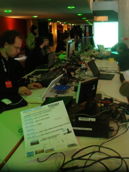 ** Coders working on the Moving Forest, the experimental project by Shu Lea Cheang.