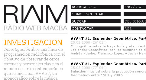 RWM es un proyecto de radio online con vocación divulgativa y sin ánimo de lucro […] RWM es un proyecto radiofónico del MACBA que explora las posibilidades de Internet y el medio de la radio como posibles espacios de síntesis y de exposición. […]