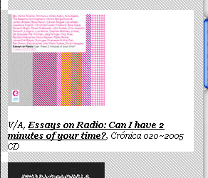 Next Article   SINSALradio. Program n76. Essays on Radio:Can I have 2 minutes of your time? [o_Ó]