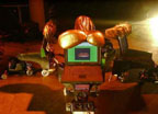 A SoaPOPera for Laptops consists of four laptops on radio controlled cars. The laptops are mounted on custom made loudspeaker-trailers. The piece uses voice recognition and text-to-speech as well as max programming. The four vehicles are essentially performers. The work involves the four characters talking to each other or singing. Peter Sinclair and G.H. Hovagimyan also perform with the characters, by playing guitar or talking to the characters. A pitch tracking software allows the laptops to listen to a string of notes and sing along. The characters respond to each other via keywords that trigger responses thus affecting natural conversation. The characters cars are controlled by perfomers.