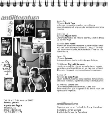 acciones acústica arte arte sonoro artilugios artistas audiovisual charlas cine comunidades convocatorias copyleft cultura libre directos educación entrevistas eventos exposiciones festivales fonografía grabaciones de campo hacktivismo historia ideologías instalaciones instrumentos inteligencia colectiva internet libros música netaudio novedades nuevos medios paisaje sonoro podcasts radio recursos ruido software software libre sonido talleres textos videoarte vídeo